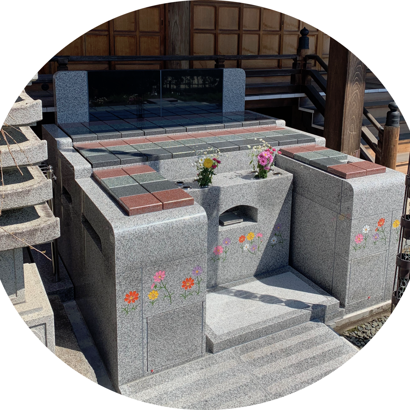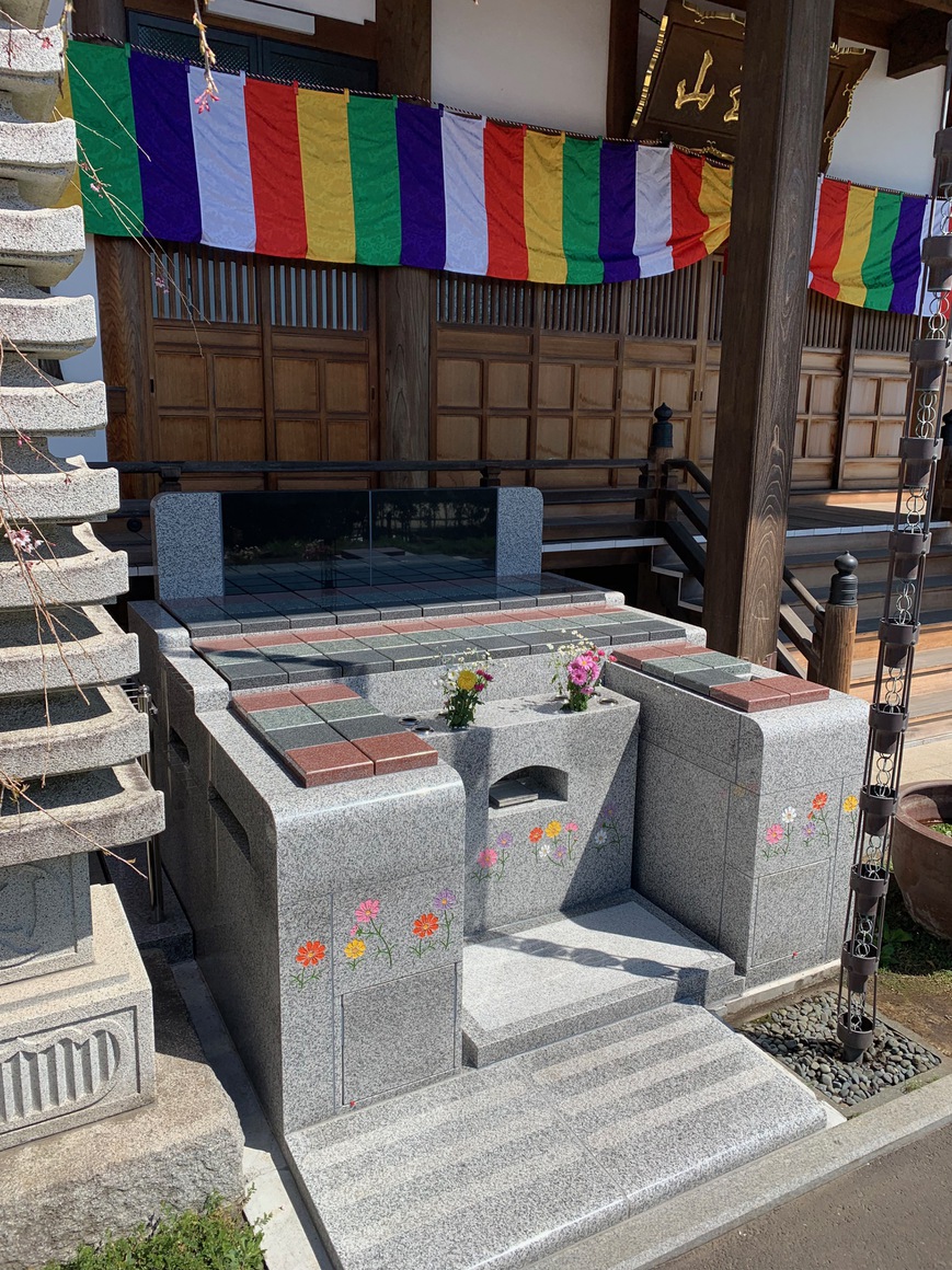 本堂正面で仏様の前に鎮座するこのお墓が、ペットにとってもお参りする人にとっても心の安心に繋がれば幸いです。