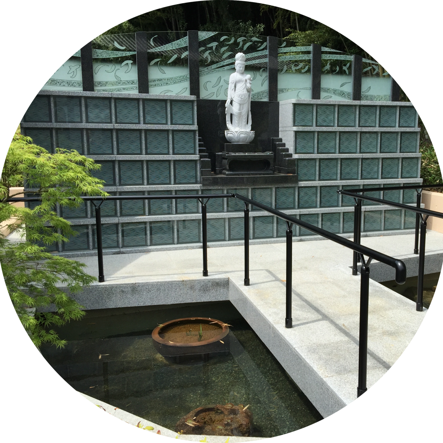 本堂の左奥に永代供養式の納骨堂が完成しました。お勤めの声が毎日届く場所であり、お参りも天候に左右されません。宗旨宗派不問で、年間管理費のいらないことから、負担の少ない供養の方法と考えられています。
